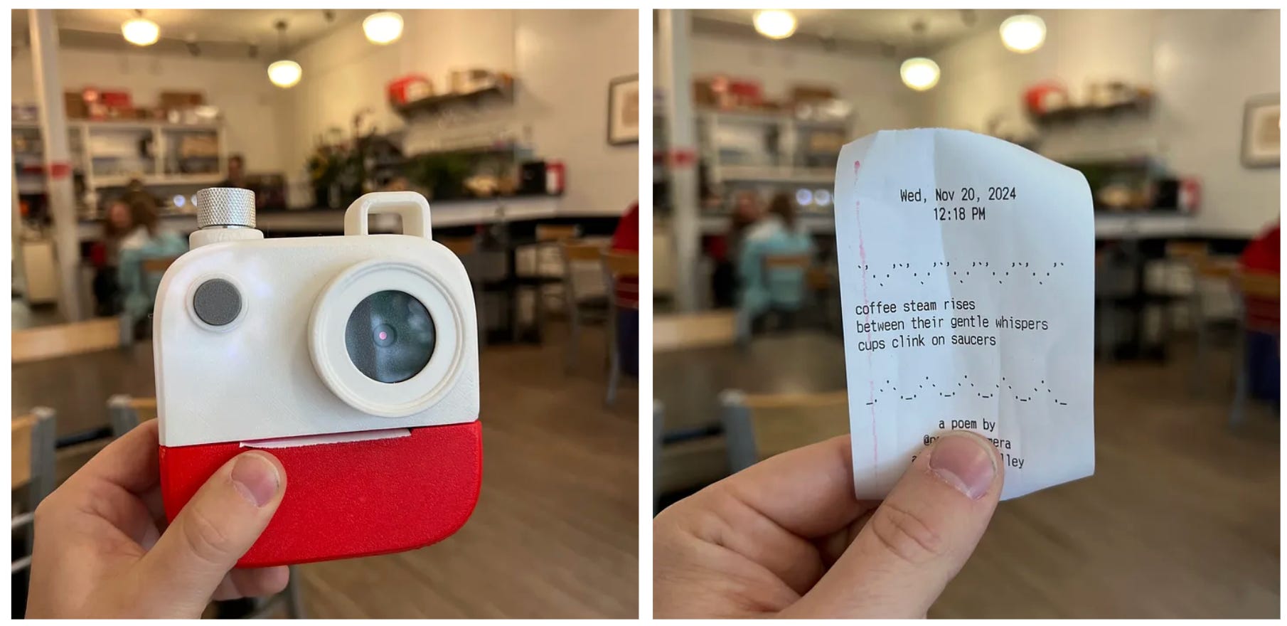 Jasmine Sun: [00:46:45] It’s a little Polaroid camera where you snap a photo and it prints out a poem that an LLM generates about what it sees. She was saying she loves the medium of an LLM in that context because it is the non-determinism that makes it exciting. It is part of the thing that you are gonna get a different poem every time. And there’s something fun about that.